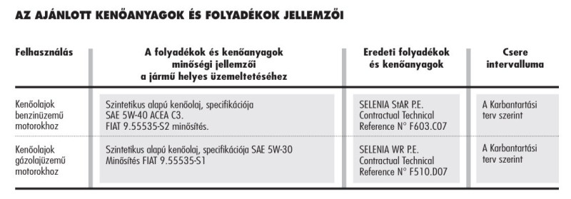 Eredeti előírás: API SJ, 5W-30, 10W-30, 10W-40
