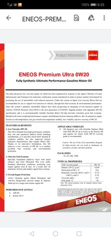 A gyári olaja Eneos Premium Ultra 0w20 Ecstar ruhába öltöztetve... Miért nem találod elég jónak?