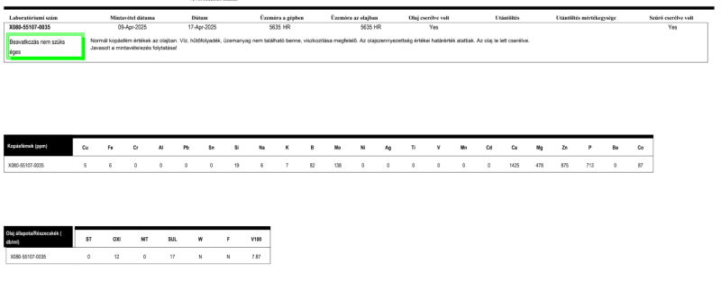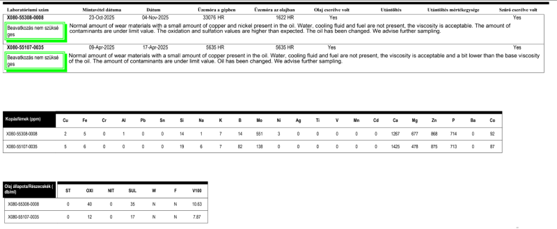 Kopás itt is teljesen oké, bár csak 1622 km-t volt benne. Viszont az látszik, hogy OXI és SUL már jóval magasabb, mint a másiknál volt, vagyis ezt az olajat eleve nem tartós üzemre tervezték. Itt nyilván a gyári ajánlás mindegy, de ez 3 nap euro ring volt (az említett hőfokok tartásával) + oda-vissza és pár hétvégi karika, vagyis akik 4-5-6k km-t akarnak menni vele szerintem maguk alatt vágják a fát. Amúgy az olaj jó, látszik, hogy a strapa ellenére alig vesztett viszkozitást. Meg látszik szépen az adalékolás különbsége is.