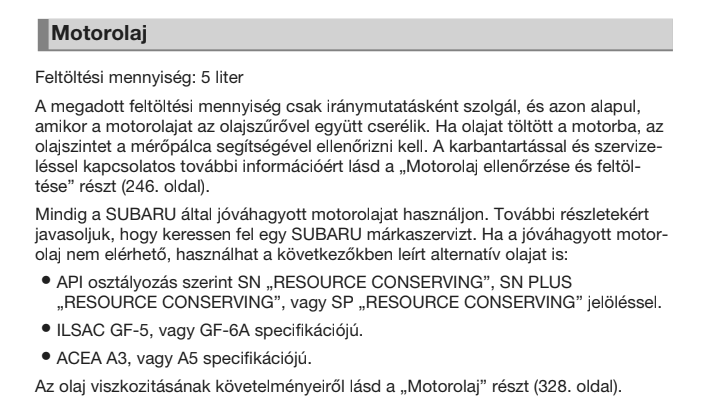 Viszkozitásnak is a kvázi oké modern, de nem túl vékony 0w20 az ajánlott, de 5w20, 0w30 és 5w30 is elfogadott. (Már itt jelzem, hogy amúgy az STI hivatalos ajánlása 0w40).