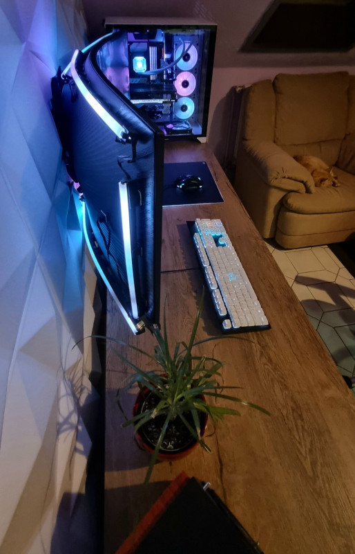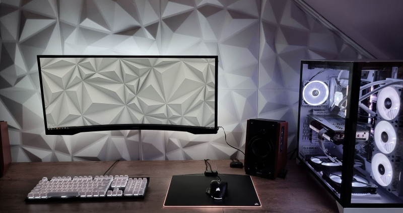 Nekem volt nagyon agresszíven hajlított ultrawide-om régebben (mondjuk volt flat 21:9 is, 10 éve, amikor bejöttek), de semmit nem láttál szemből, ami zavaró lenne....oldalról igen