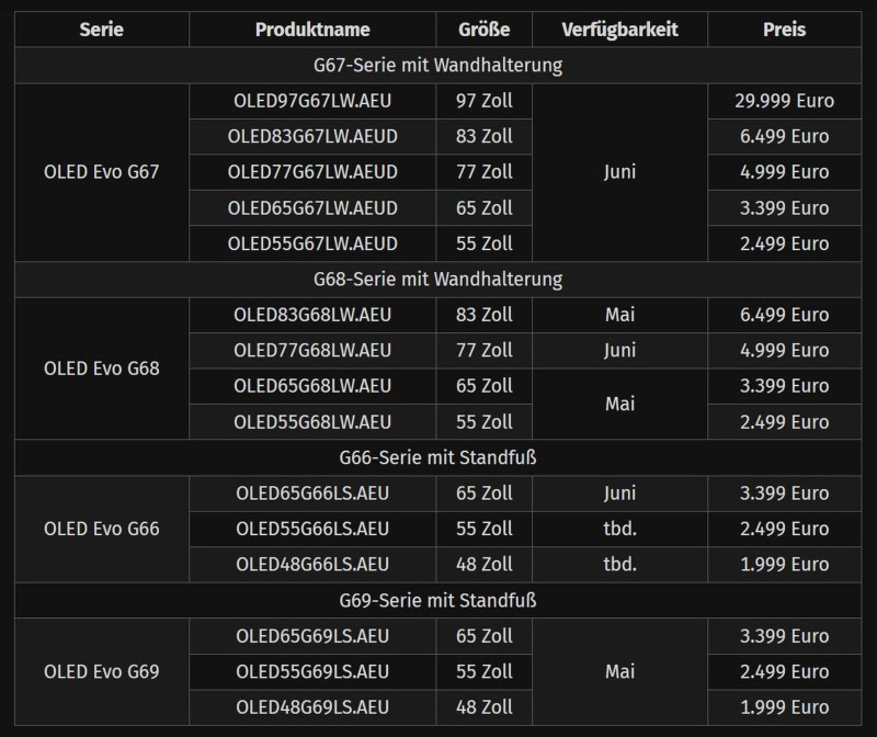 Preise und Verfügbarkeit: LG OLED W6, G6 und C6 kommen ab Mai in den Handel