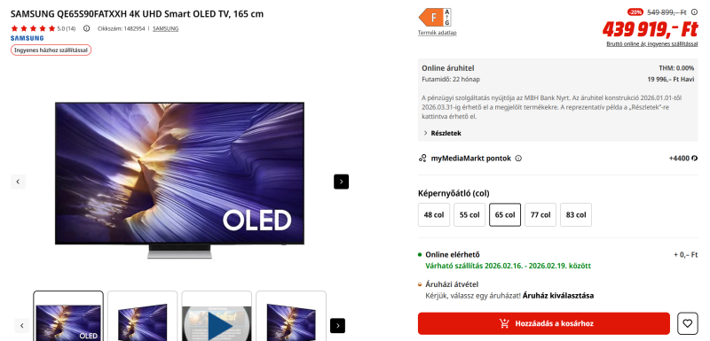 Eladtam az 55 colos LG C4es oledem es tervben van egy 83-mas C5 vásárlása. 915 000 Ft-re jonne ki lg storeból most akciós.