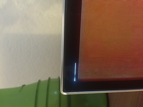 Az enyémen két oldalt rózsaszínes elszíneződés, középen pedig inkább zöldes, de lehet hogy ez utóbbi csak illúzió. A vicc, hogy ez az elszíneződés csak és kizárólag akkor látszik, ha szemből nézed a tévét. Semmilyen más szögből nem látszik. Inkább lenne fordítva...