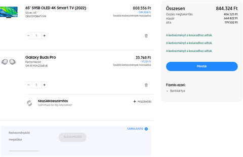Samsung.com-on egy trükkel az S95B-t most elég jutányosan lehet megvásárolni: