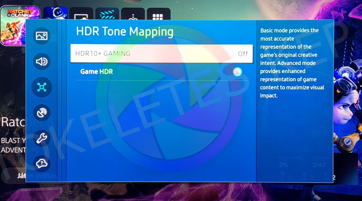 A Game HDR legyen bekapcsolva ez a HGIG funkcionalitás, a HDR10+ meg ki.