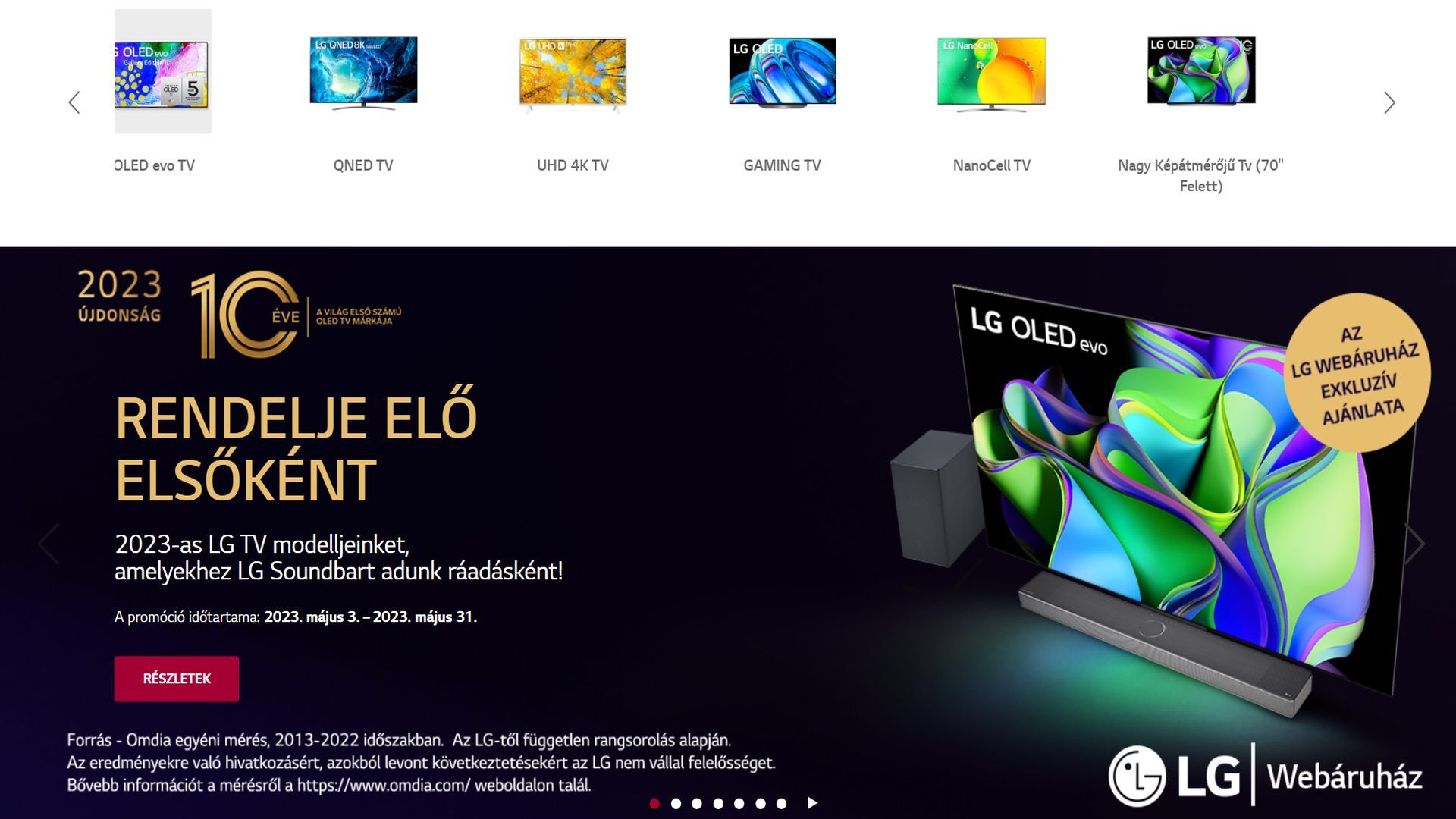 A 2023-as LG Oled tv-hez soundbar (LG S80QR hangprojektor: 399.990Ft) jár 05.31-ig.