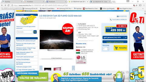 És az ár : Én ezt a Tv-t 249.000 Ft ért vettem karcmentesen egy Outletben. Lett volna OLED-is csak abba nem mertem belemenni, mert ott elég szűkös volt az üzemidő kérdése. ( Megint a szerves dolog ... )
