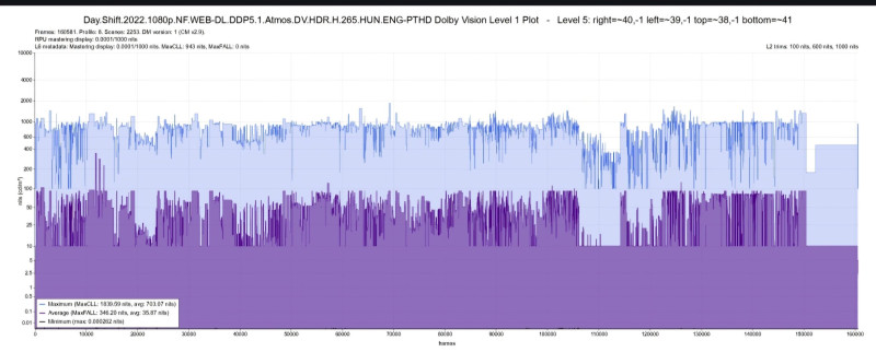 Szoval ezek alapjan azt kb kizarnam, hogy a release es a stream kozott lenne kulonbseg, viszont a mediainfo es/vagy a dovi tools lehet nem pontos, mert a netflix logo sem volt annyira vilagos mint amennyire szamitanek a 9xx nits alapjan. En nem ertek hozza, de az biztos, hogy ezeket jobb lenne referencia monitorral kimerni, ami 1% es 100% mellett is tud 1000 nits-et es mutatja a histogram-ot. En szemre csak tippelni tudok. -