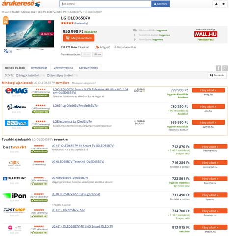 Az LG 65B7 bőven 800k alatt van, kérdés hogy az egyes üzletekben milyen feltételek vannak.