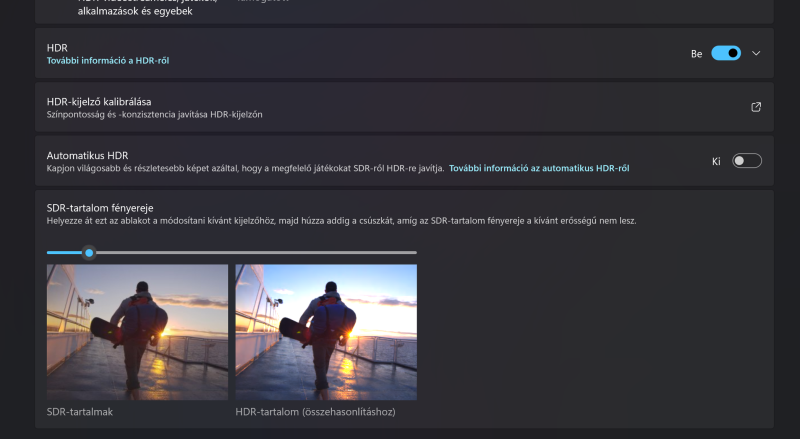 Szintén C2 nálam win11 alatt, én a csúszkán 10-es fényerőn használom. Szerintem ne gondold ezt túl, a windows hdr implementáció nem a legtökéletesebb, szerintem ez a csúszka tényleg csak arra való, hogy nagyvonalakban egy fényerő értéket be tudj lőni a hdr-en belüli sdr képnek. Nem tökéletesen lépcsőzetes, nincs benne semmi exra logika vagy megfontoltság, használd annyin amennyin a legkellemesebb.