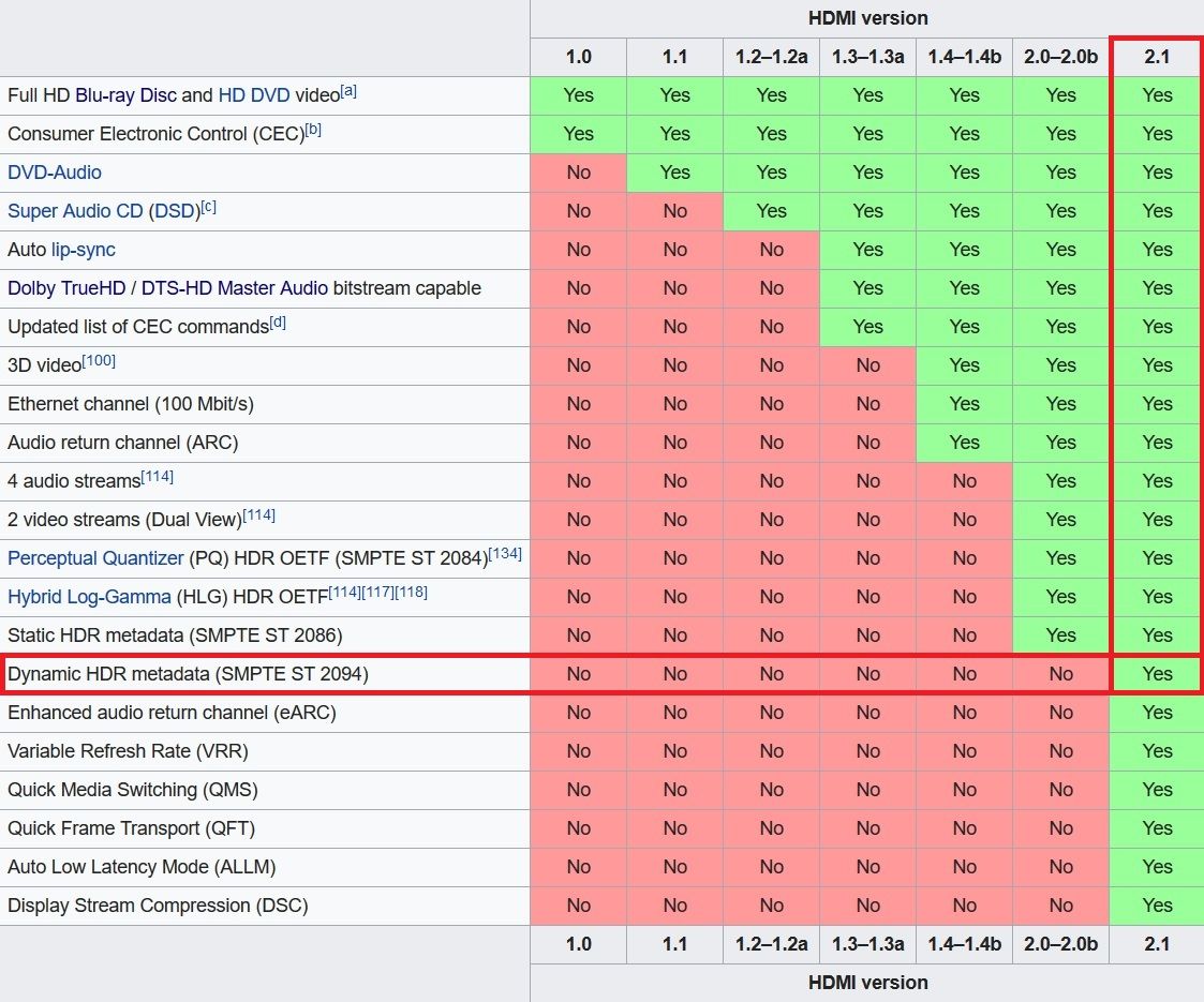 A kérdés nem ez volt, hanem a specifikációk szerint csak a HDMI 2.1 tudja a dynamic HDR metadatat (SMPTE ST 2094). Most akkor hogy működhet teljesértékűen HDMI 2.0-án a Dolby Vision?