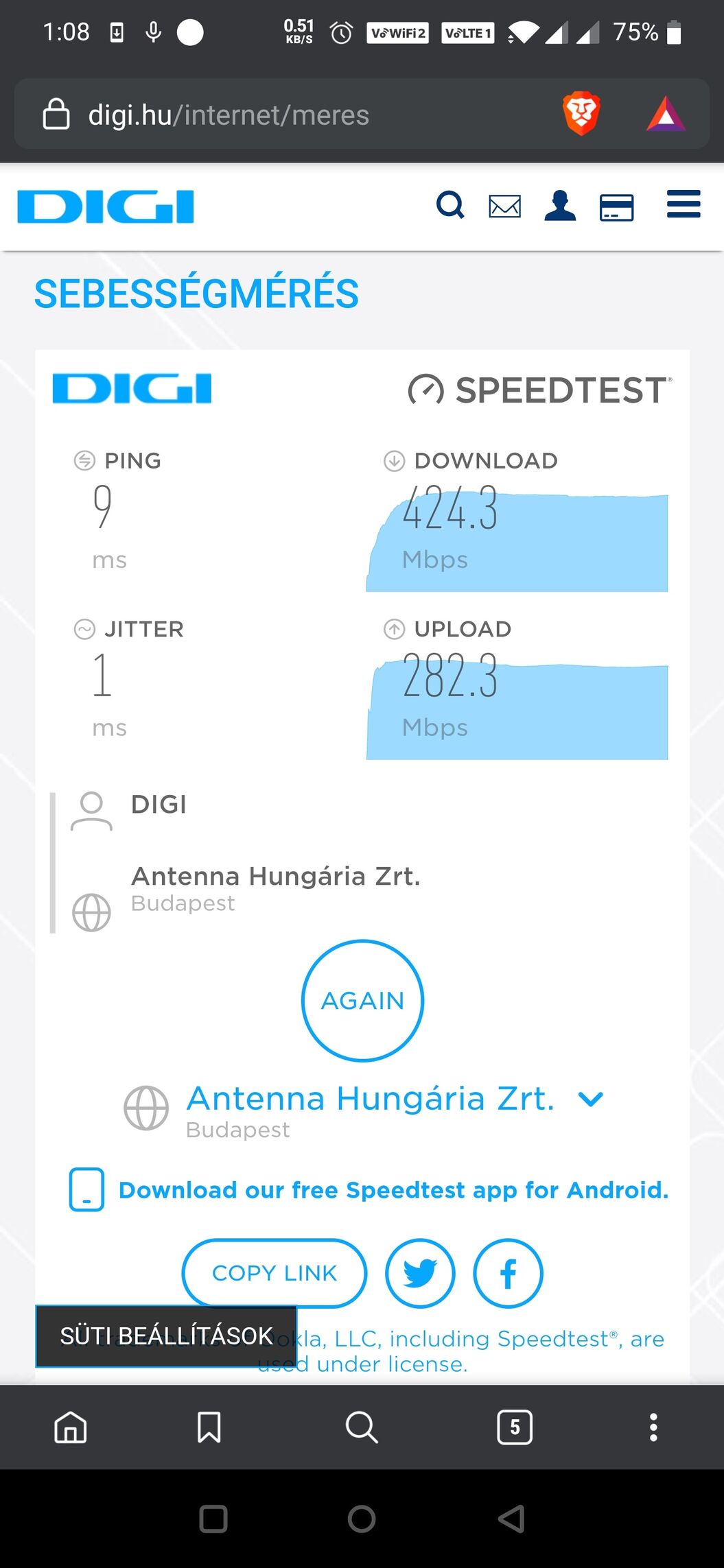 Soha nem a TV böngészőjével állapítom meg, hogy mennyire jó vagy rossz a net sebessége. A TV-k általában, 5GHz-en a 36-48-as csatornákat szeretik, a routerek felületén meg látható, hogy milyen linksebességgel kapcsolódnak. 100-as csatornán nem biztos, hogy stabil lesz a kapcsolat.
