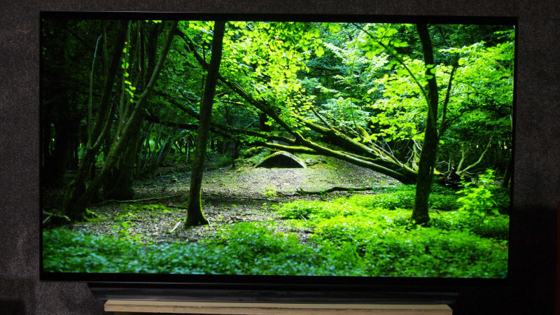 Pontosabban olyan szempontból jobb, hogy egy picit sem színesednek be a képernyő szélei a betekintési szögtől, mint az LG C9-en. Viszont ha be van kapcsolva kis fényerővel a plafonon lévő lámpa (aminek állítható a színe és intenzitása is, és 1%-on szoktam járatni ~6500K-en), akkor ugyan nem tükröződik benne maga a lámpabúra, de kb. úgy néz ki rajta a fekete, mint egy Pioneer plazmán (kicsit "'dereng", már kezdtem is volna párszor nézegetni, hogy mit állítottam el, hogy nem teljesen fekete a fekete, de aztán kikapcsoltam a TV-t, és úgy is kicsit "tejes" a fekete, míg ég a lámpa).