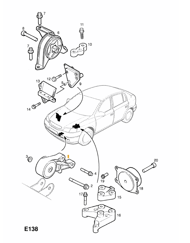 Opel Astra G Classic Caravan 1.7 CDTi (F35 alvázkód). Első motortartó bakot keresek. A szerelő szerint, amit felhoznak alvázszámra a webáruházak keresői, azok nem ehhez a motorhoz valók. Csatoltam egy képet, a szerelő szerint a szilenttel van a probléma, hogy ennek a felfüggesztése két vékony ponton történik és a szilent közepe kézzel mozgatható, ami gyenge és ehhez a dízelmotorhoz egy megerősített szilentű motortartó kell, mert a motor ezen ül rajta plusz a rezgéseket is el kell nyelnie.