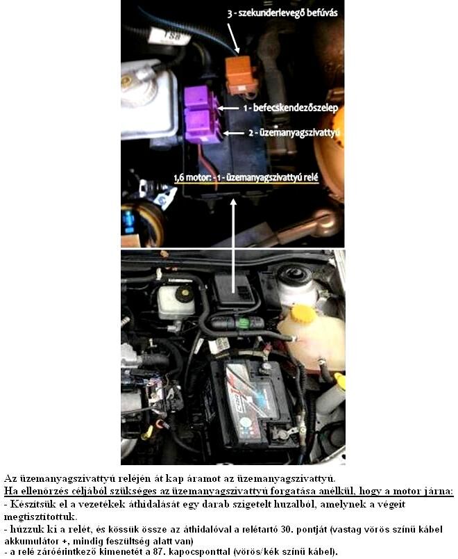Nézd meg, hogy működik e az üzemanyagszivattyú a relén keresztül.