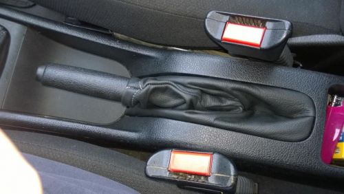 Nagy nehezen sikerült kicserélni a szoknyákat. Még egyszer nem szívesen állnék neki. Igazság szerint házilag egyedül fel sem lehet rakni a kézifékszoknyát. Van egy keret amire rá van kapcsozva gyárilag és arra kell visszakapcsozni. Gondolom nem sokan tartanak otthon pneumatikus tűzőgépet, én is elvittem kárpitoshoz hogy lője bele. A másik gond hogy a gyári műbőrnek van kialakítva a hely, a bőr meg vastagabb így ezt a kevés hajamat is majdnem kitéptem míg eligazgattam a kéziféken a borítást. Nem vagyok vele elégedett teljesen de jobb már nem lesz, egyszerűen nincs hova eligazgatni már a bőrt. Itt vannak a képek is.