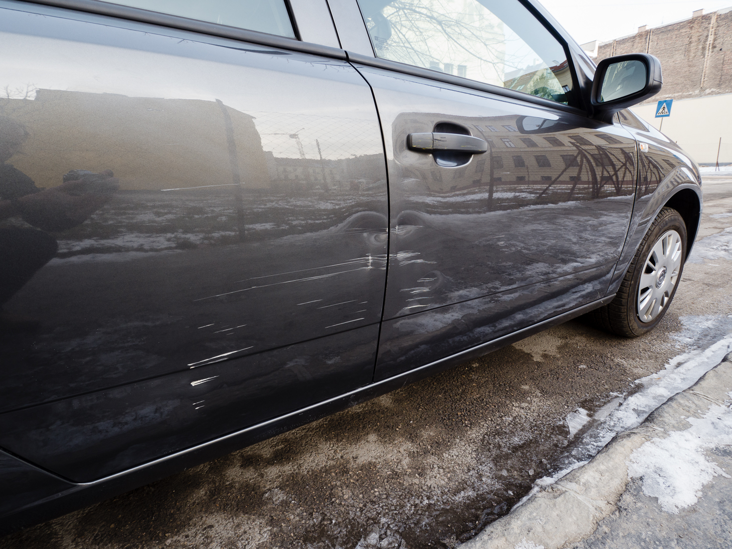 A horpadásokat kiegyengették, mindkét ajtó új kilincset kapott, és 3 elem újra lett fényezve. Így az egész történet vége 92ezer+ÁFA lett (számlásan, mert céges kocsi).