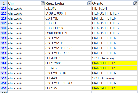 Ha rákeresek a HU612/2X cikkszámra, akkor két találat akad.Nekem sikerült az elsőt megrendelni. Mint látjátok annyi különbség van,hogy az egyiknél x van a másiknál X. Plusz az,hogy a másodinál nulla autó van amihez használható és méretek sincsenek megadva.