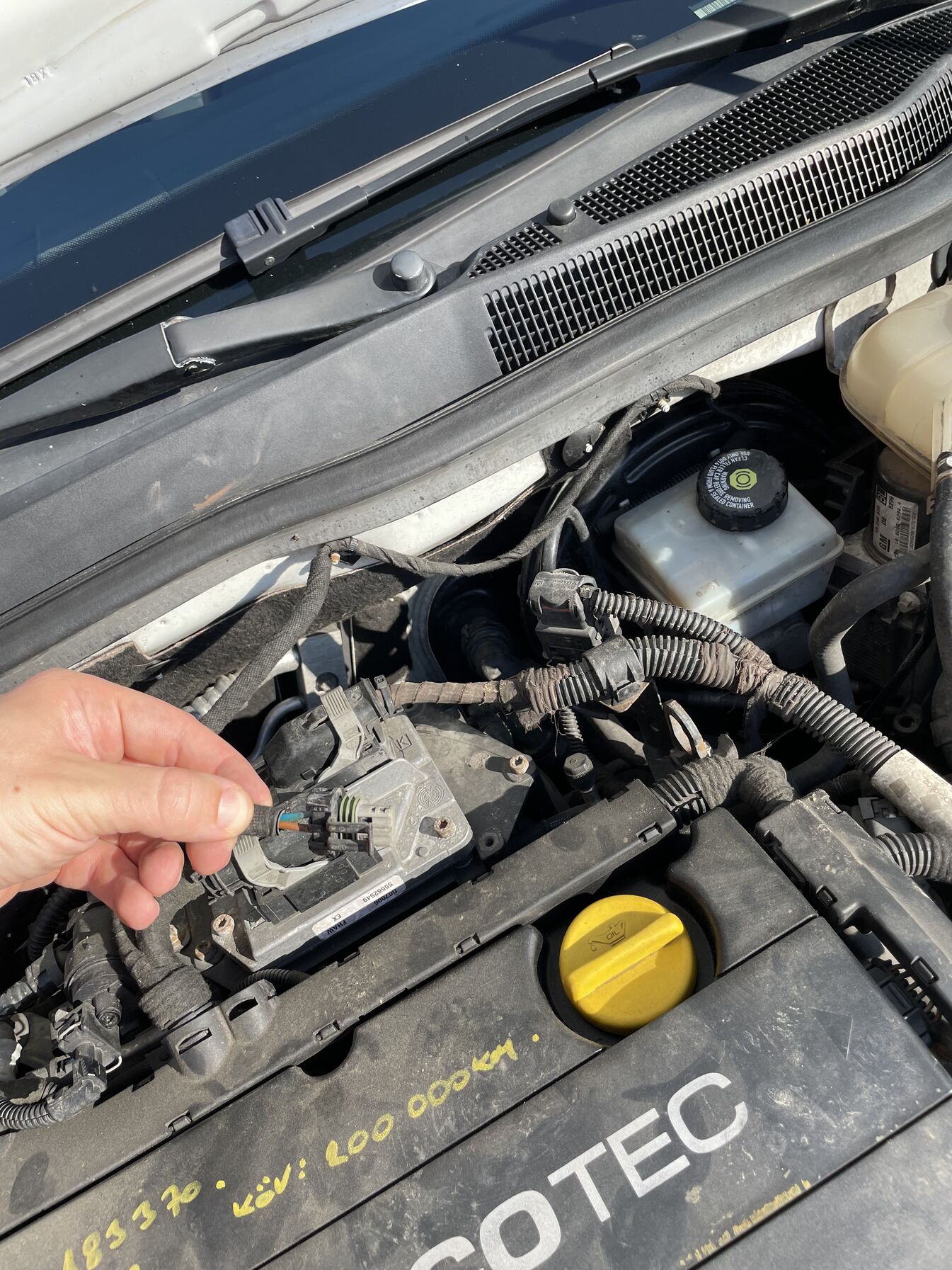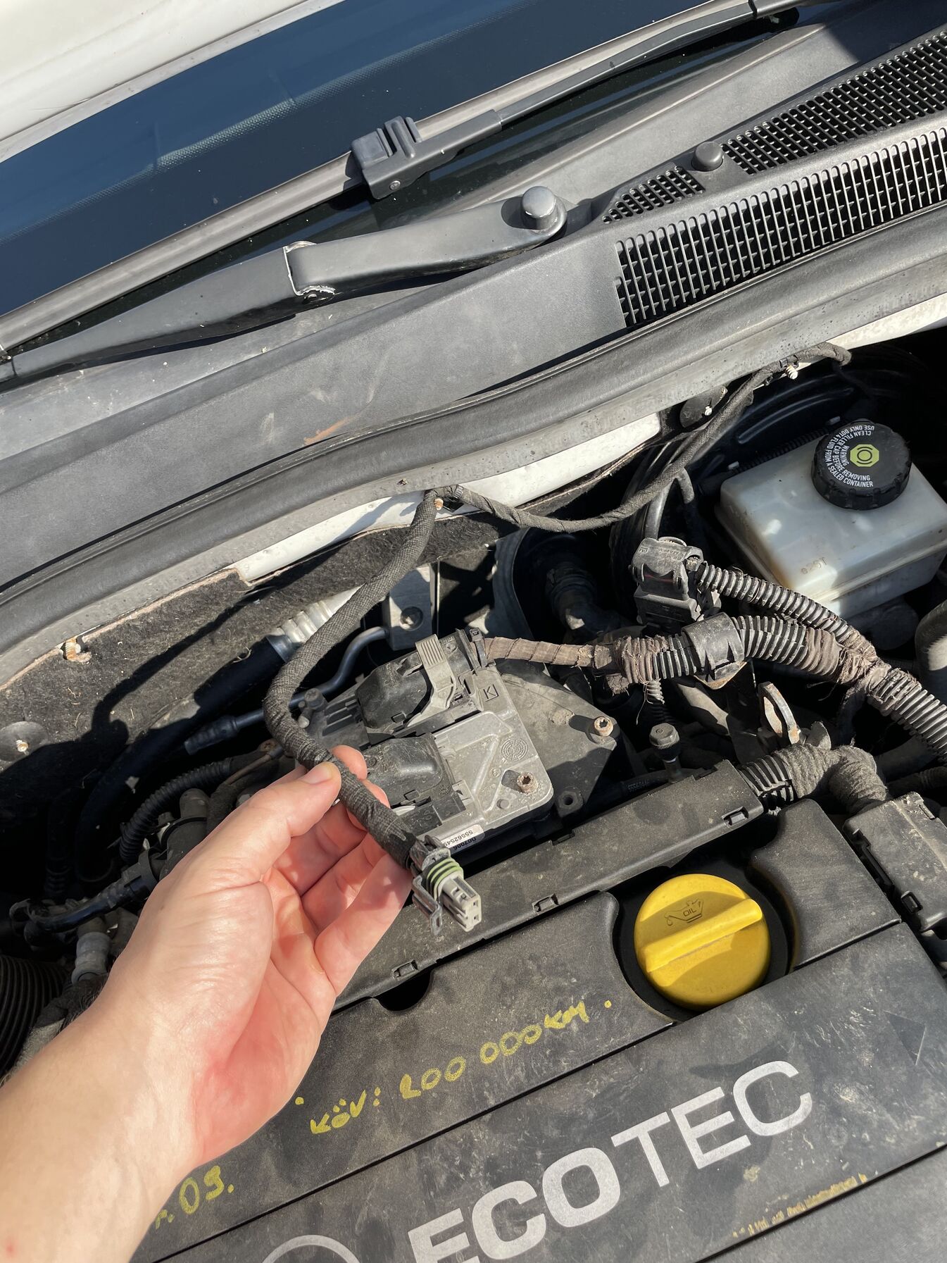Illetve a hétvégén az autó vizsgálata közben felfedeztük, hogy a motortérben egy csatlakozó csak lógott a motor mögött, nincs bedugva, viszont nem találtuk meg a helyét. Próbáltam követni, hogy honnan jön de sajnos egy nagyobb köteg részeként folytatódik.