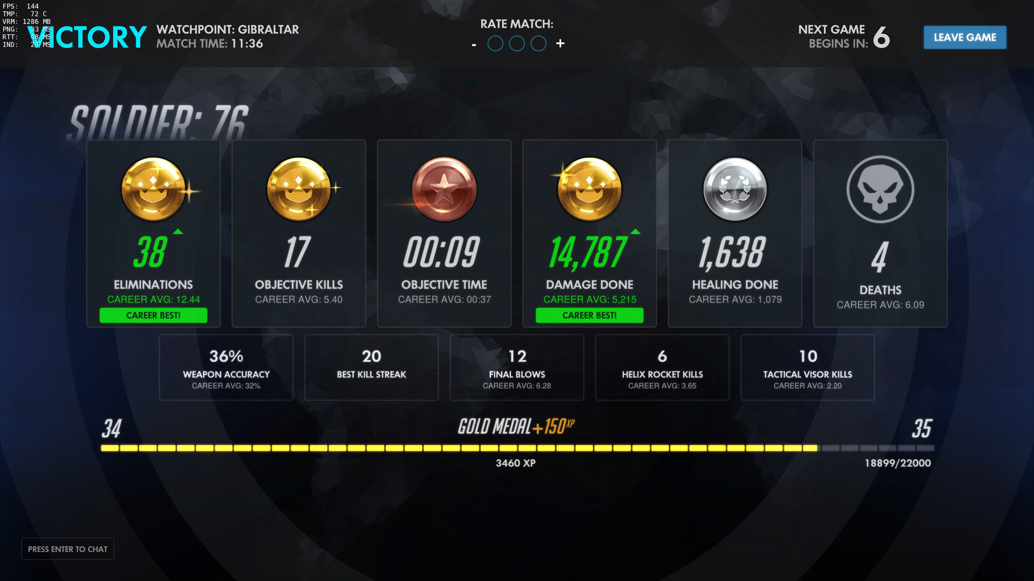 Toxicity szempontjából a placementek utáni első meccs pont olyan volt ahol egy premade 3-as a csapatunkban széttrollkodta a gamet, friendly mei fal ami visszatartott mineket, meg direkt meghalás, meg flamelés ezerrel, ki is kaptunk mondanom sem kell. De utána meg egész jó meccseket lehetett játszani.Ami számomra meglepő, hogy amint betett platinumba, itt Soldierrel már nem tudok úgy érvényesülni mint előtte, egész meccsen csak lövöm az ellent és nincs meg a gold dmg, míg előtte szinte mindig megvolt. Zaryaval ez nincs így vele továbbra is ugyanúgy lehet menni és a dmg output is megvan.