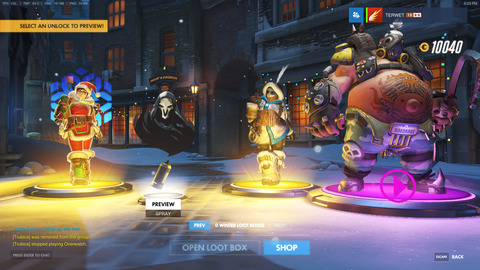 Roadhog, Soldier, Junk + Orisa emote-okon kívül minden kiesett, valamint tavalyról sikerült bepótolnom a hiányzó Mei, Torb, Zen legendarykat, és az összes létező epicet is
