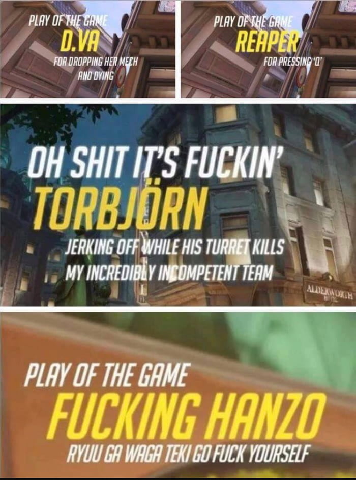 Múltkor nekiállt fikázni a csapatunkból Hanzo, hogy Soldierként miért nem nekem van gold medalom miért neki. Ezzel mondjuk nekem az jött le, hogy Hanzo szerinte is szar hős, de ő valahogy jó vele, én meg szar. Majd átvette a csapat is és felváltva szidtak engem chatben pedig nem voltam különösebben béna, és a végén elég simán nyertünk. Bár megint rezgett a léc, hogy oké ha ennyire szar vagyok akkor jövök törpével és ütöm a bejáratnál, de végül mégsem tettem, meg ezekért a "kedves" csapattársakért megéri küzdeni.