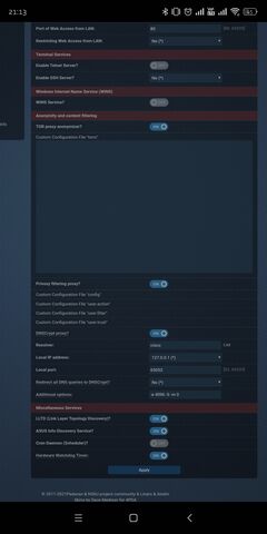 Akkor ezekszerint ki vannak vezetve a TOR és egyéb proxy-k a webfelületre, de minimálisan konfigolhatóak ott, optimális beállításokhoz lehet a konfigfájlokat túrni, ami a beépített vi-jal nem épp kellemes