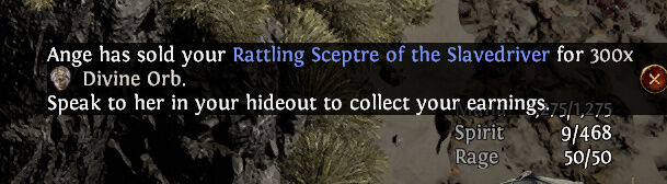 Egyszer próbáltam már Alvanaval kereskedni currency-t, de az sem jött össze. Lehet nem jó ratio-t állitottam be. Mert ott divine orbot akartam venni, és gyanítom nem volt elég amit kínáltam.