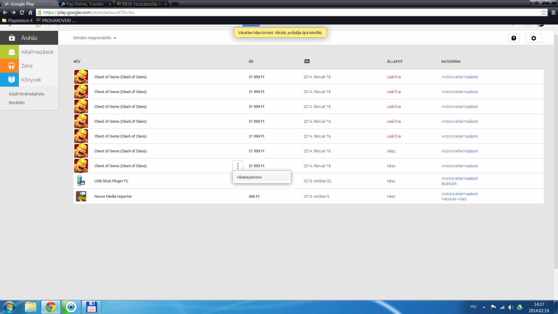 Ráadásul jópárszor próbálkoztam, meg is jelent a netbankban 7 x 227 forint zárolás tegnap (02.14-es dátummal). Majd mára +1 ilyen lett, már 8 van. Nemtudom, ez lehet attól, hogy a PP próbálkozott levenni az összeget? A tranzakciót visszadobta, sikertelen volt mind. A bankom is számláz ezért valamit ezek szerint?