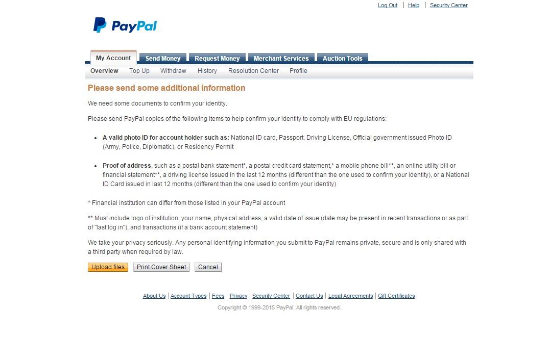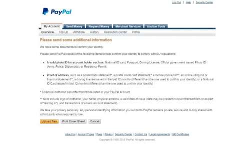 Sziasztok! Kaptam a paypal-tól egy üzenetet, hogy az accountomra érkező pénz tekintetében átléptem valami limitet és valami eu szabályok miatt fel kell töltenem pár dokumentumot. A kérdésem az lenne hogy pontosan minek a másolatát kell feltöltenem, ahogy olvastam az egyik a szem. igazolványom és még mit? Aki már kapott hasonló üzenetet attól várnék egy kis segítséget.