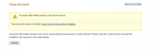 Your account access has been limited for the following reason(s):