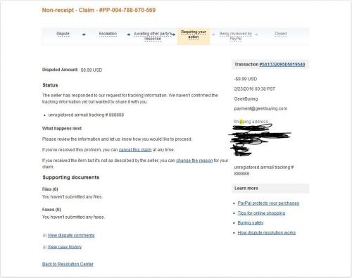 Belépve a PayPal-re látpm, hogy tőlem vár a PP respond-ot.Azonban nem igazán látom mit is kellene erre válaszolnom és hol. A csomagom továbbra sem érkezett meg, így sem lezárni nem akarom a case-t, sem módosítani.