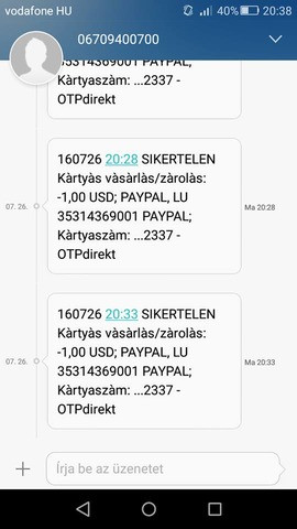 Lejárt a Paypal-hoz hozzáadott kártyám. Ma az új felületen frisitettem a kártyám lejárati dátumát, cvc számot. Rögtön kaptam is az smst 1$/283ft levonasrol. Igy most kész is van a kártya frissitése? Ugy emlékszem utoljára mikor ugyan igy meg újíttotam a kártyát meg kellet erösiteni a 400ft-os levonásal is.