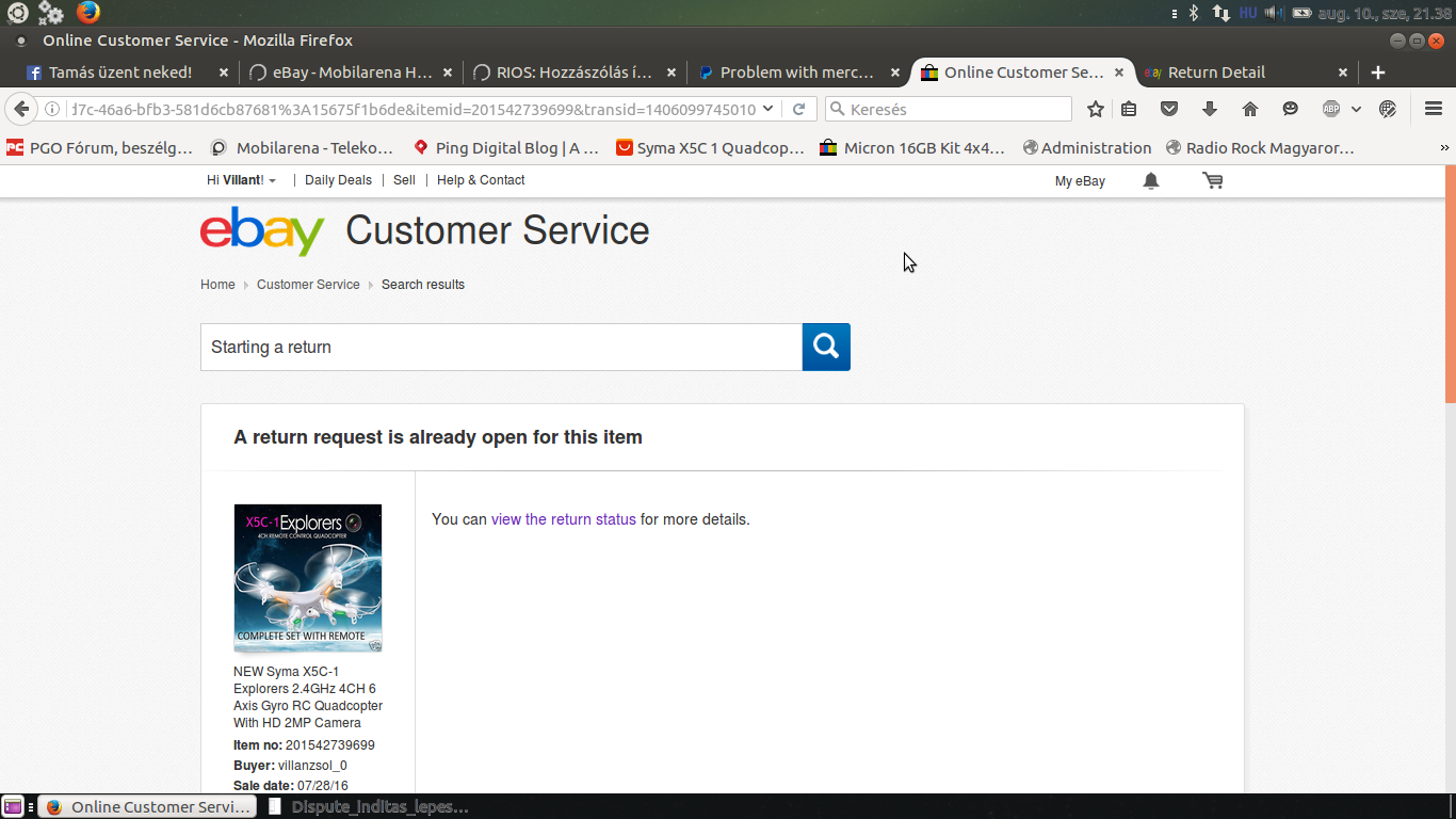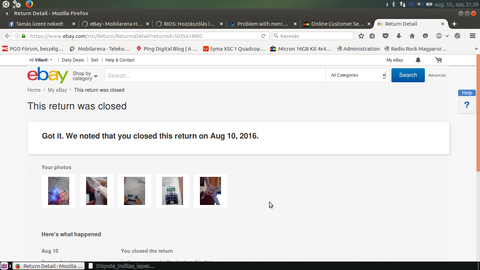 Az eBay Resolution Center-ben azt látod hogy ma 10-én lezárták? Ez az első mondatod: No open request or cases?