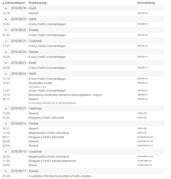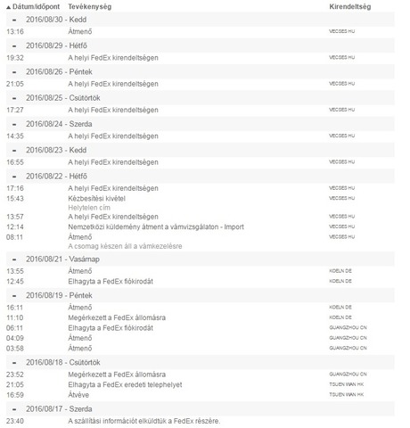 Természetesen megemlíteném a FEDEX Ügyfélszolgálatnak az értesítő nem hagyását ás kérném a kárpótlást.Most egyébként itt mi olvasható: A küldemény helyzetét a fedex.com oldalon is nyomon követheti.