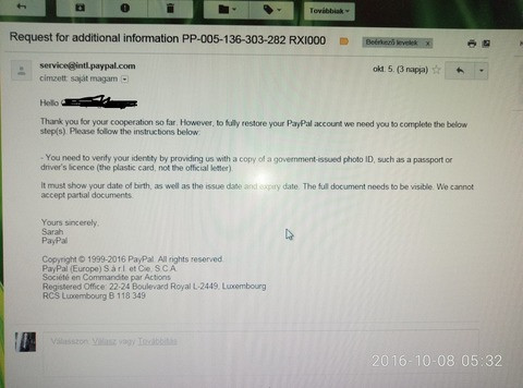 Segítsetek, valóban a paypal-tól jött ez a levél? Az e-mail cím jónak tűnik, de valahogy mégsem bízom benne...