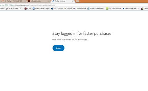 Értem, de még most is az aktuális helpjük ezt írja. Ezt nem nézted meg: a PayPal-n a Profil fogaskerék, Security fülön a Stay logged in for faster purchases, Edit résznél van-e eBay utalás? Vagy böngészőre?