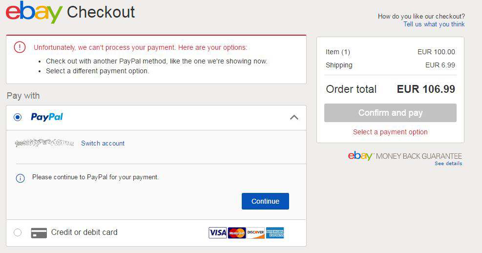 Ha jól gondolom csak az eBay-n történő fizetésnél fordult elő mostanában ez a gond. -