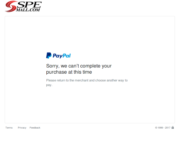 Olyan problémám lenne, hogy szeretnékvásárolni a spemall -ról egy telefont. A telefon ára a paypal egyenlegemen van. Azonban mikor a webshopban rámegyek a fizetésre ezt a hibát kapom: