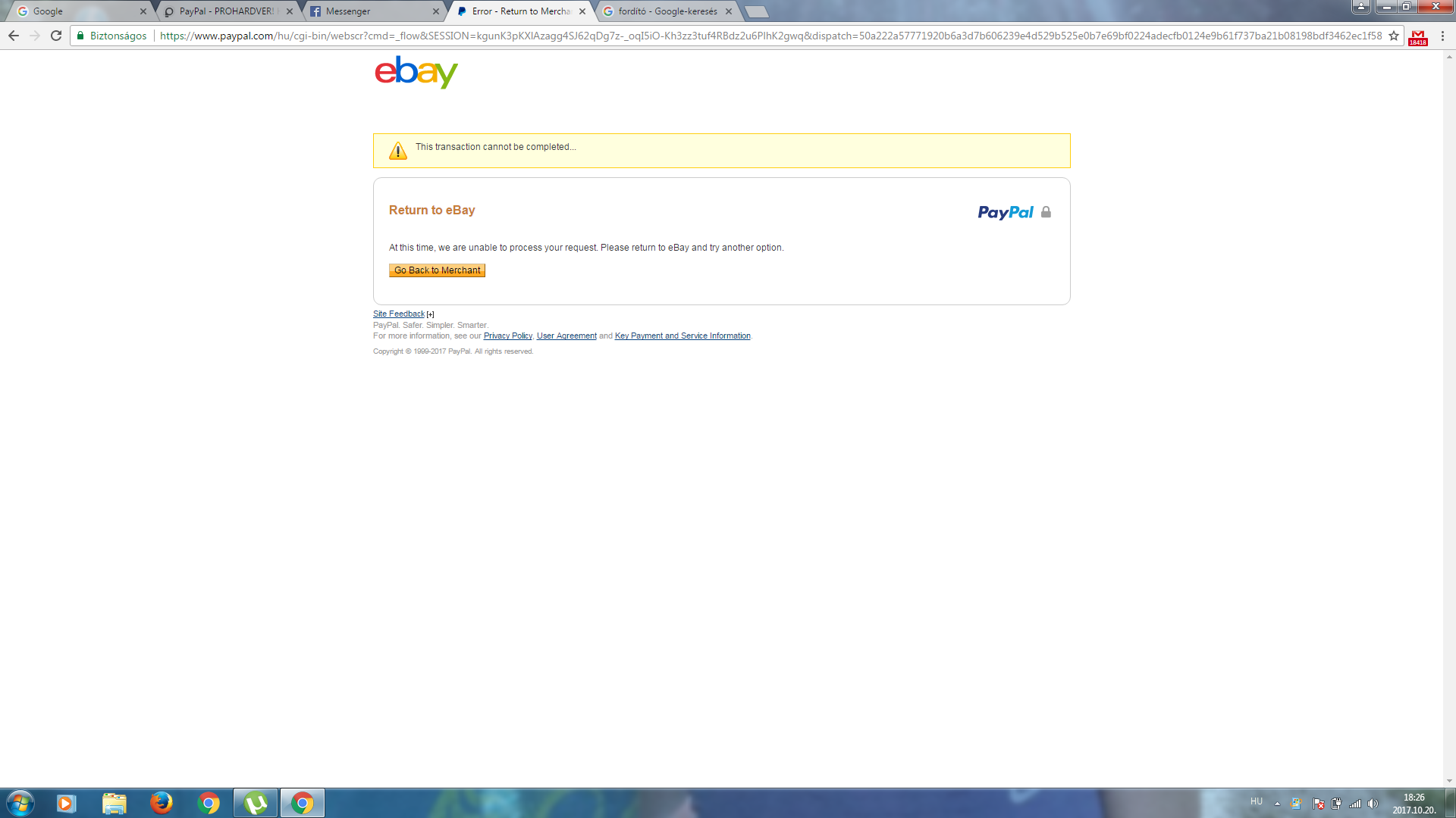 És csak emlékeztetlek arra, hogy a PayPal is azzal kezdi, hogy elsődlegesen az eladóval kell az vitát lerendezni.
