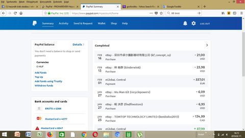 Beküldtem nekik minden dokumentumot a limit emeléshez, erre először abba kötöttek bele, hogy az OTP hitelkártya kivonatán nincs rajta a bank logója. Ok, beküldtem nekik a folyószámlát. Ott meg azt kifogásolták, hogy nincs pont a címben a házszám után, így nem egyezik a PayPalon beállítottal. Most átírtam a címet, amit persze a kártyáknál külön kell beállítgatni. Kíváncsi vagyok, most mit találnak majd ki.