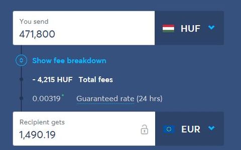 Bár nekem ennyit írt To receive €1,490.00, a payment of €1,519.22 should be sent. €29.22 will go to fees. That's 1.92% in fees, effectively. 9190,15 Forint