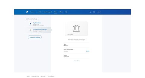 A német fióknál nem kell bankkártya mert a bankszámla és PayPal egyenleg a fizetőeszköz és nem a kártyaszámlát kell hozzáadni hanem a fő pénzforgalmi számlát.