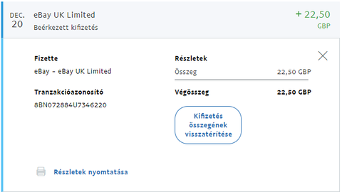 De én nem erről írtam hanem erről: majd megjött az Ebay eladótól a visszaküldött árú értéke, 36,75 Font