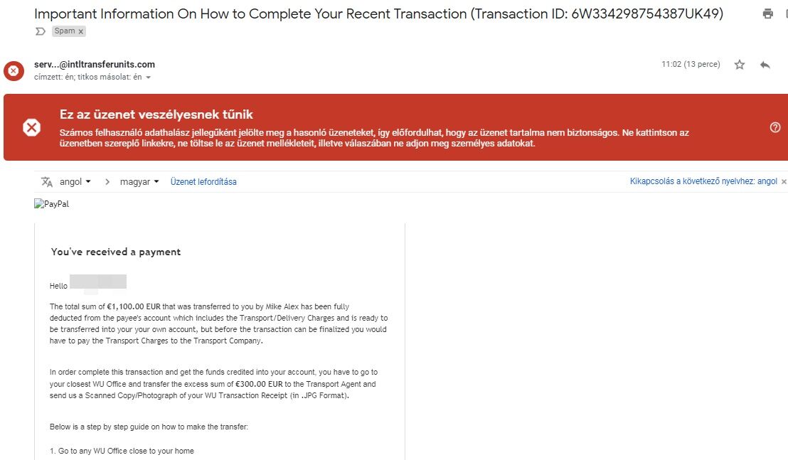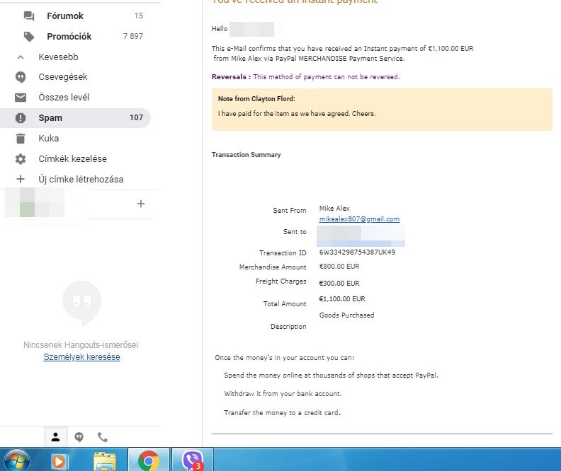 A kapott e-mail egyáltalán nem hasonlít a PayPal értesítőjére, legalul az alábbiak láthatóak? Persze az utolsó sorban más az azonosító: