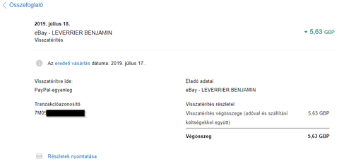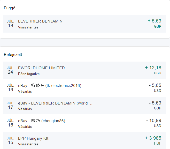 Vásároltam ebay-en egy terméket, amit paypalon keresztül fizettem, a bankkártyámmal. Az eladó ezek után fogta magát, és törölte a megrendelést, a fizetést pedig visszatérítette paypalon keresztül, a paypal egyenlegemre. Sajnos ez a visszatérítés 11 nap elteltével is függő státuszban van.