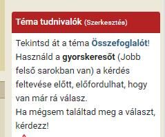 ● Használd a gyorskeresőt (Jobb felső sarokban van) a kérdés feltevése előtt, előfordulhat, hogy van már rá válasz.