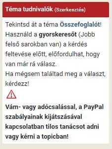 Vám- vagy adócsalással, a PayPal szabályainak kijátszásával kapcsolatban tilos tanácsot adni vagy kérni a fórumon!