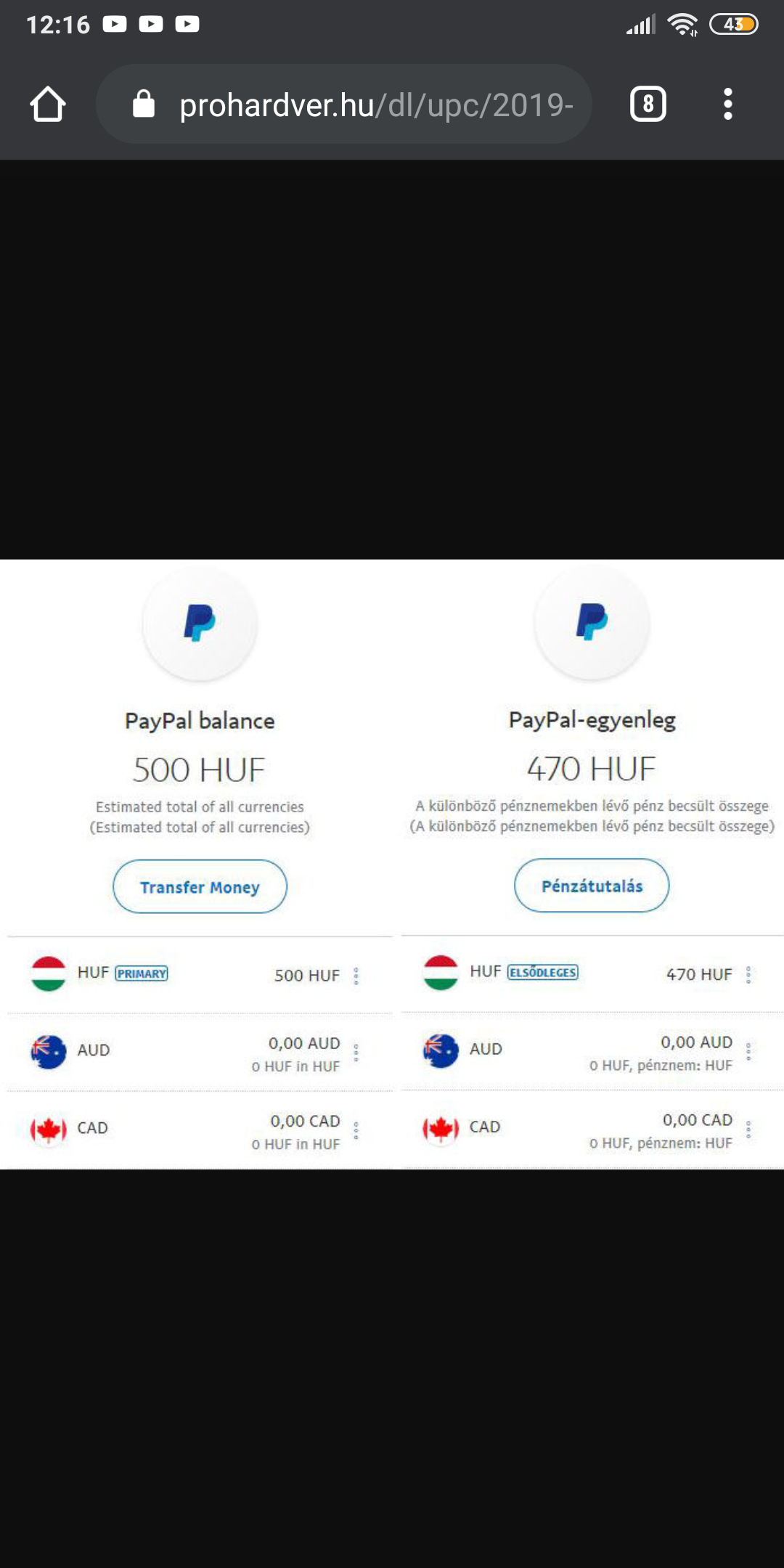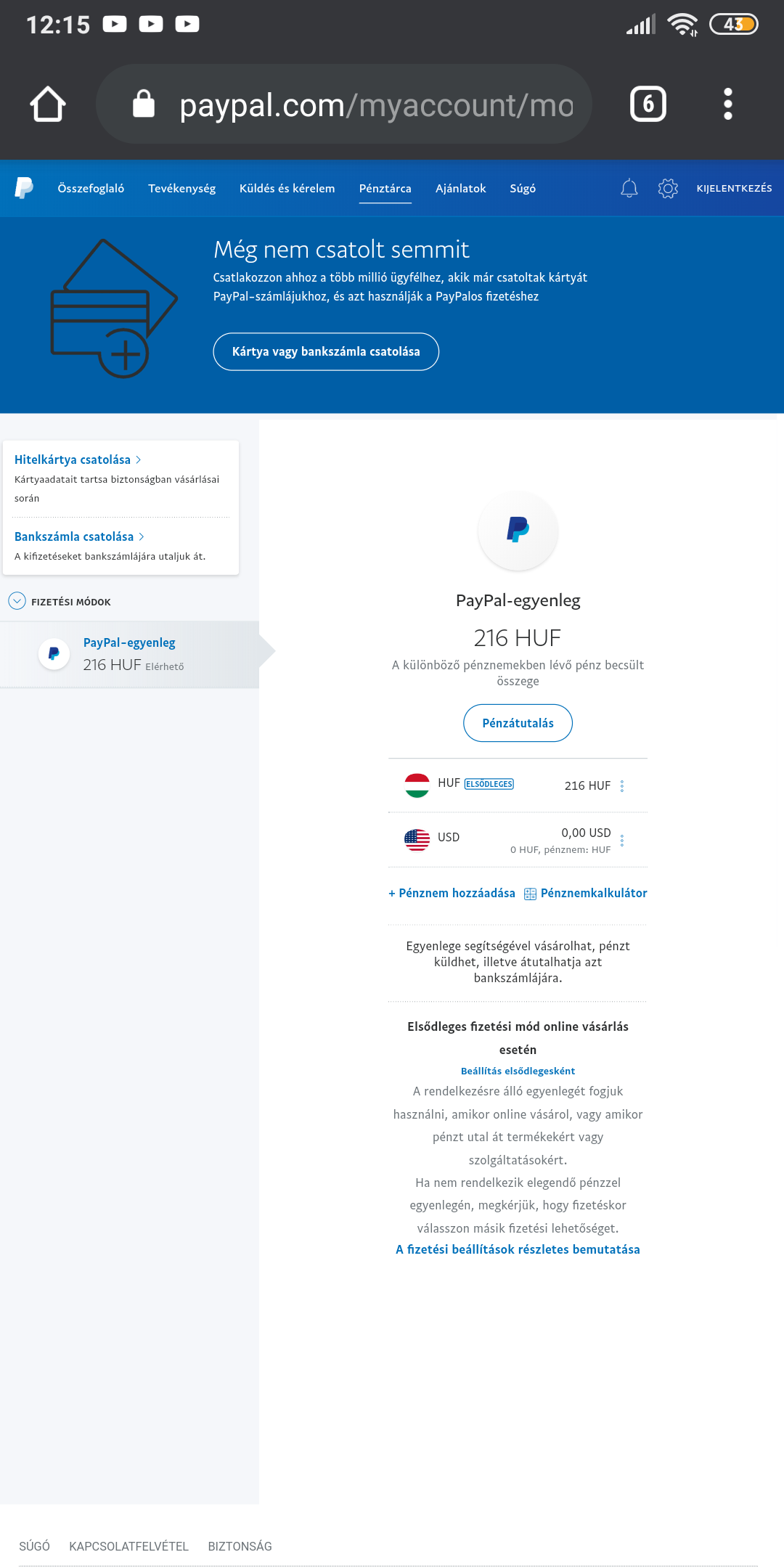 Tisztázzuk, konkrétan hol a pénz amiből a telefont akarod fizetni? Most a PayPal egyenlegeden van 216 Ft, az nem lesz elég.